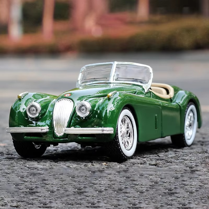 Experience the elegance of the legendary 1951 Jaguar XK120 Roadster, perfectly captured in a detailed 1:24 scale model. Its iconic design and sleek vintage curves make it a stunning collectible for classic car enthusiasts.